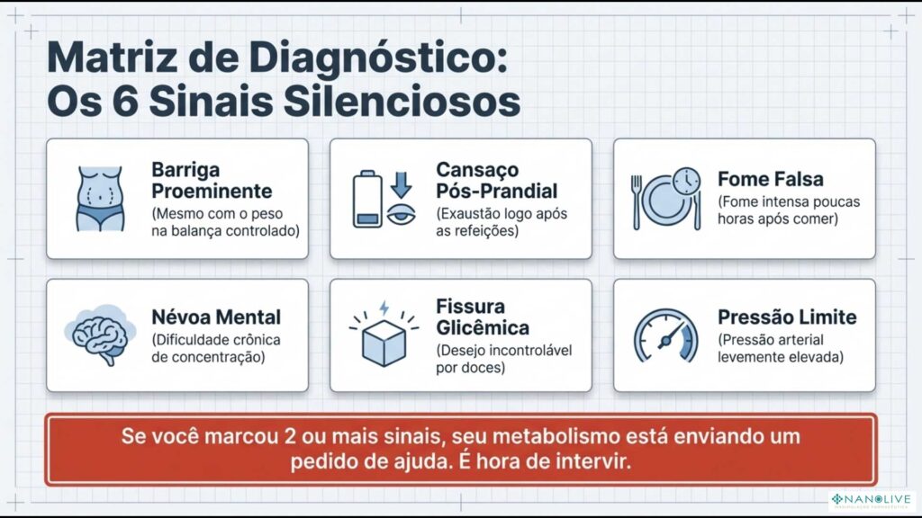 Portanto, se você se identificou com dois ou mais desses sinais, vale buscar orientação médica para avaliar sua saúde metabólica.