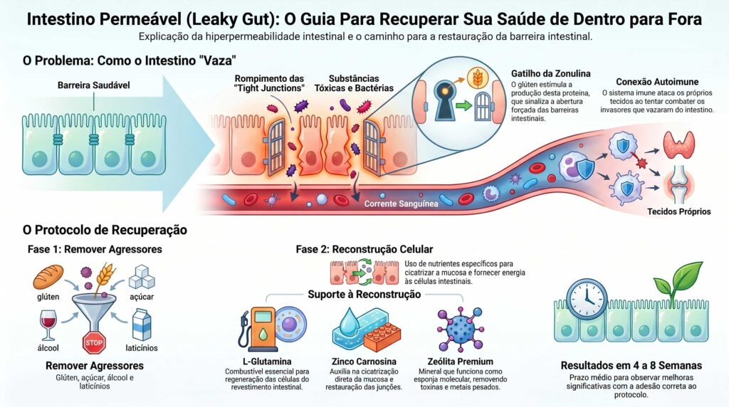 Portanto, tratar o intestino permeável não é opcional para quem convive com doenças autoimunes. Ele é o ponto de partida obrigatório para qualquer estratégia de tratamento realmente eficaz e duradoura.